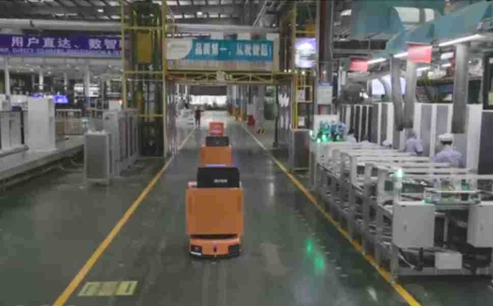 为车载冰箱物流配送打造的智能解决方案,,,,包含产中物流通过潜伏举升AMR搬运至线边,,,,产后成品物流智能仓储,,,,流程包含产中物流智能齐套入库,,线边安灯叫料AMR智能配送至线边,,,成品入库、、出库,,,通过无人堆高车机器人,,,,智能仓储管理替代人工作业管理,,实现更高存储、、、更高效率、、更具柔性化的解决方案。。。